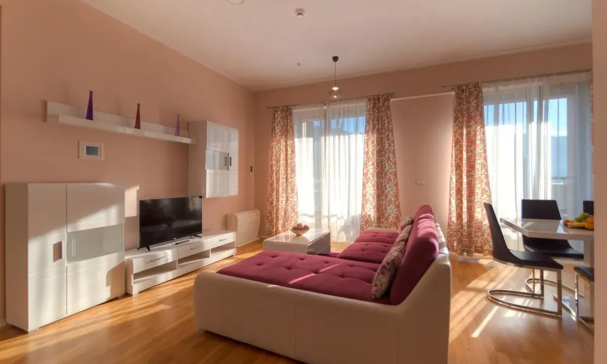 IDD3044 For sale: A modern three-bedroom apartment in the Harmonia Complex, just 150 meters from the sea in Budva. The complex offers all amenities for comfortable living, including a kindergarten, sc