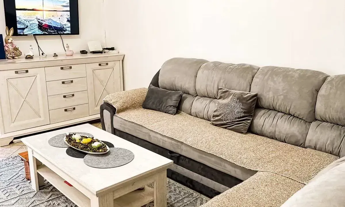 Located in the scenic area of Kavac, Kotor, this spacious apartment offers a comfortable living space of 80m². The open-concept design features a bright and airy living room that seamlessly flows into