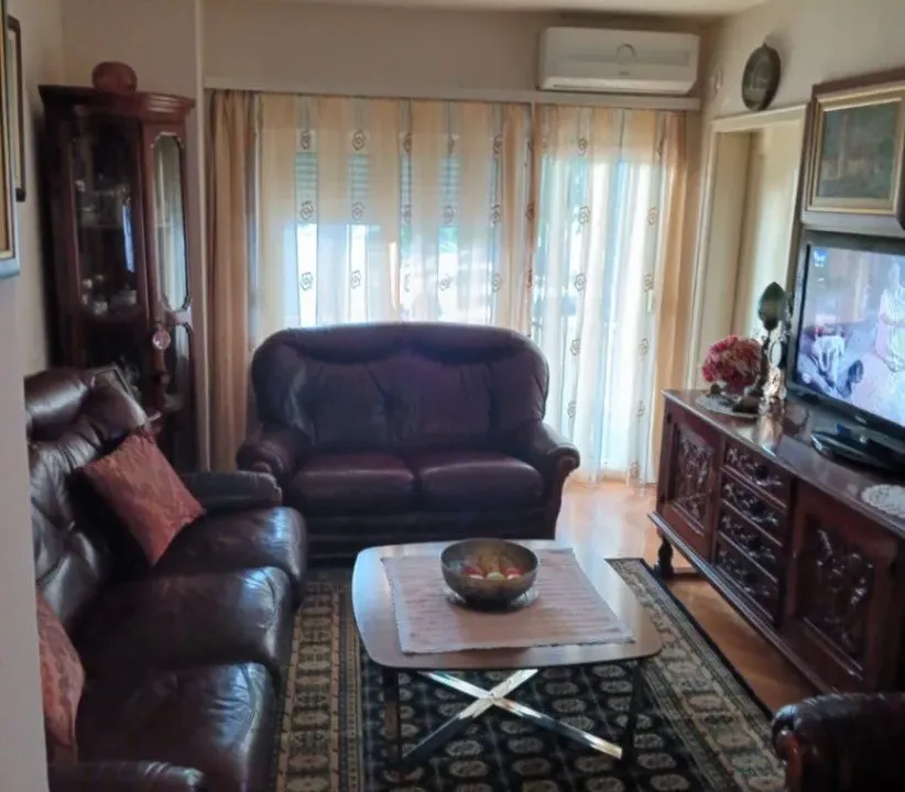 Dvosoban namjesten stan povrsine 60 m2.(53+7 m2 terasa).Uz stan podrum 12 m2.Srtuktura stana dnevni boravak kuhinja i trpezarija, 2 spavace sobe, hodnik, kupatilo,terasa.Stan je na prizemlju.Blizu sre